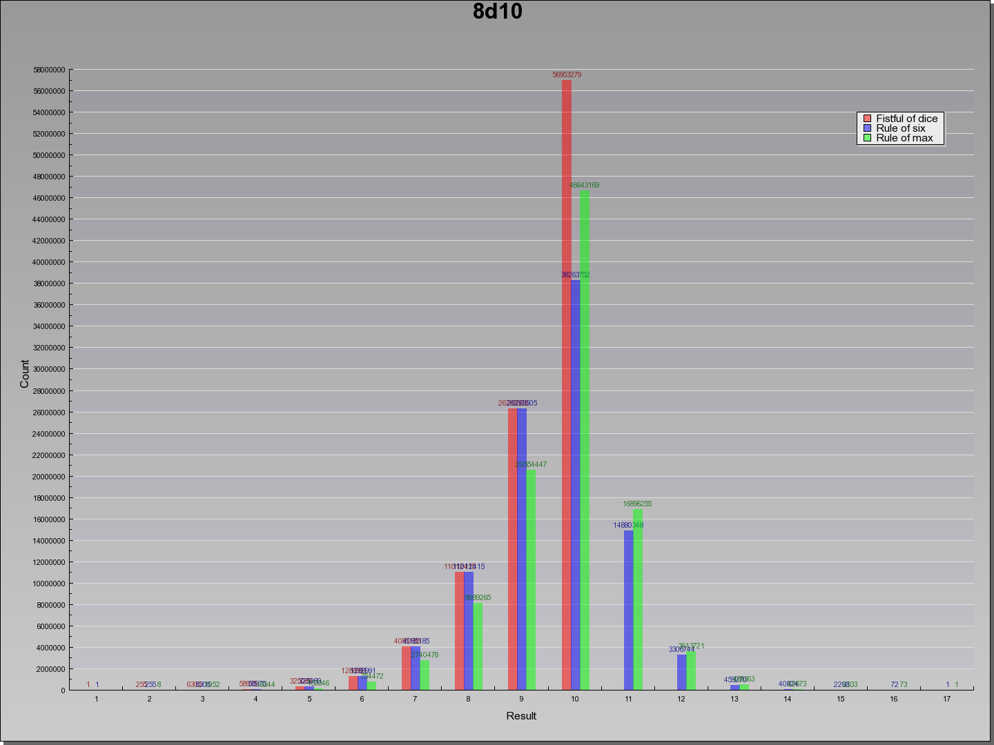 | Result | Fistful of dice | Rule of six | Rule of max | Result |