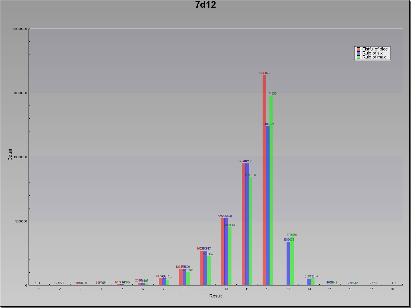 Result | Fistful of dice | Rule of six | Rule of max | Result |