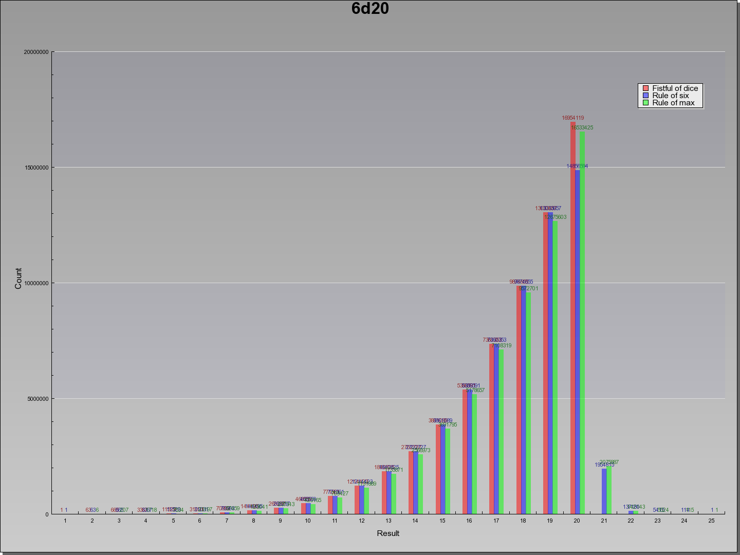 Results for 6d20, 64000000 different potential results