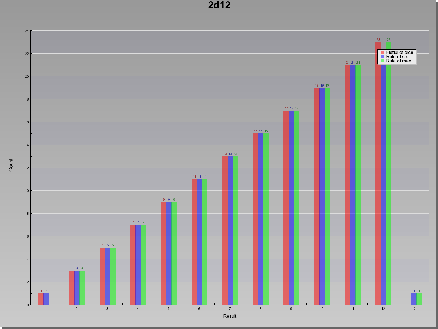 Results for 2d12, 144 different potential results
