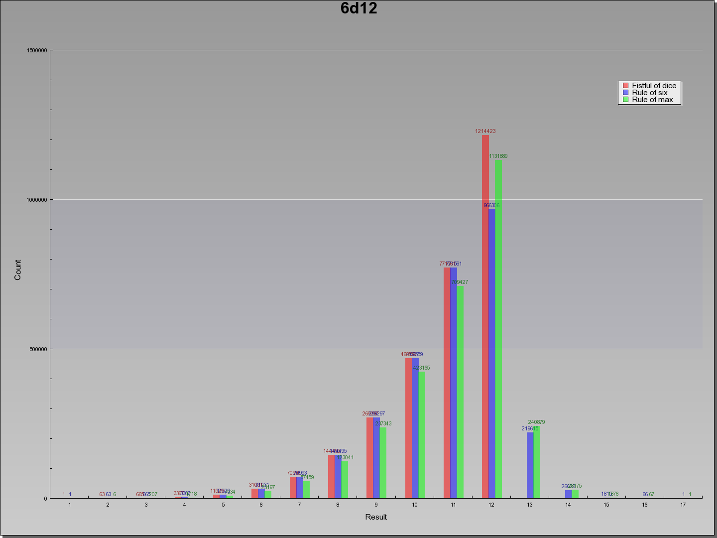 | Result | Fistful of dice | Rule of six | Rule of max | Result |